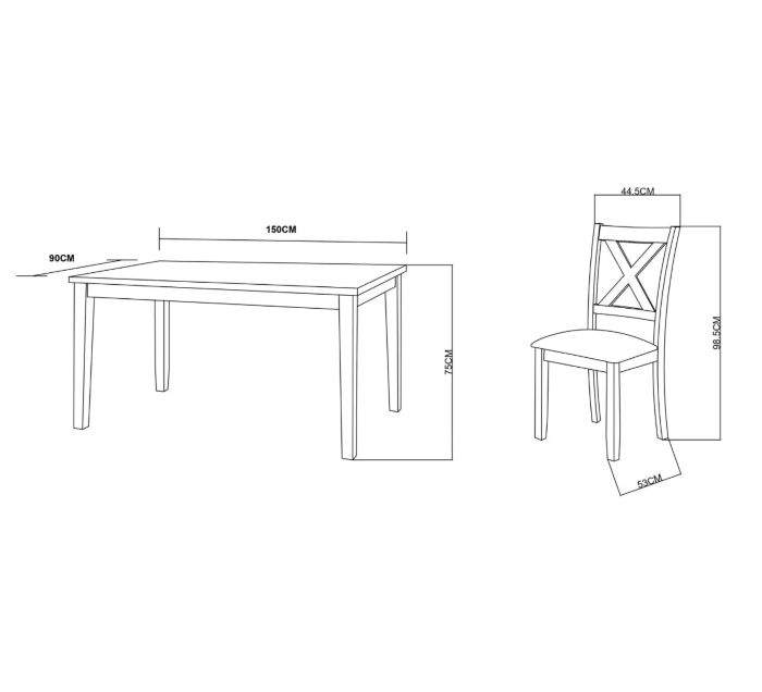 | Ancho | Mesa 90 cm | Silla 44.5 cm |