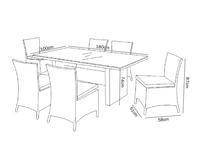 Largo Mesa: 180 cm | Silla: 51 cm